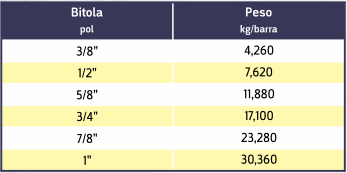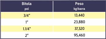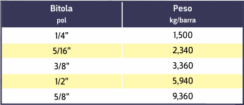 Outros aços e comprimentos podem ser fornecidos mediante consulta à equipe técnica. |